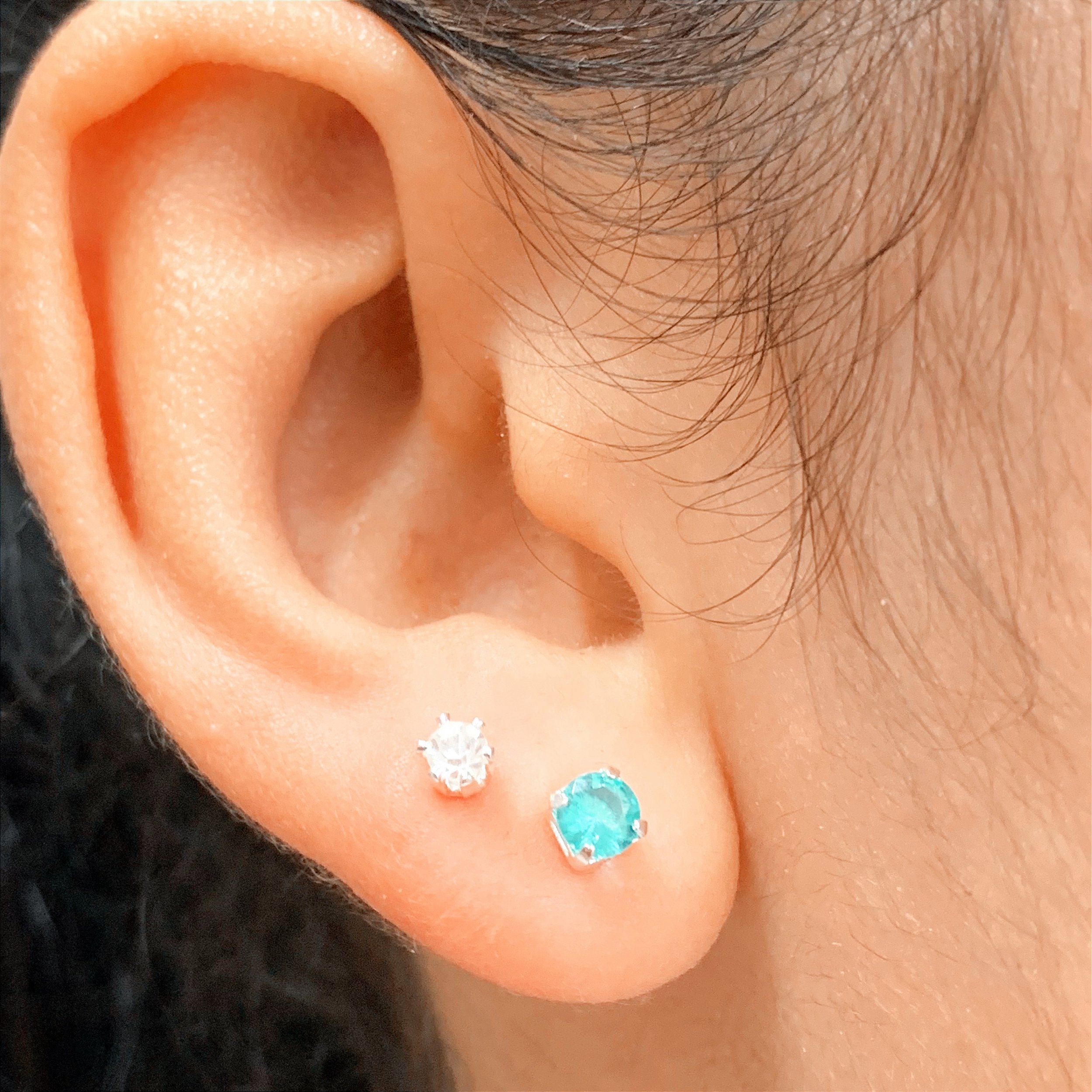 01 par de brinco zircônia pequena cristal + 01 par de brinco zircônia média cristal verde turmalina