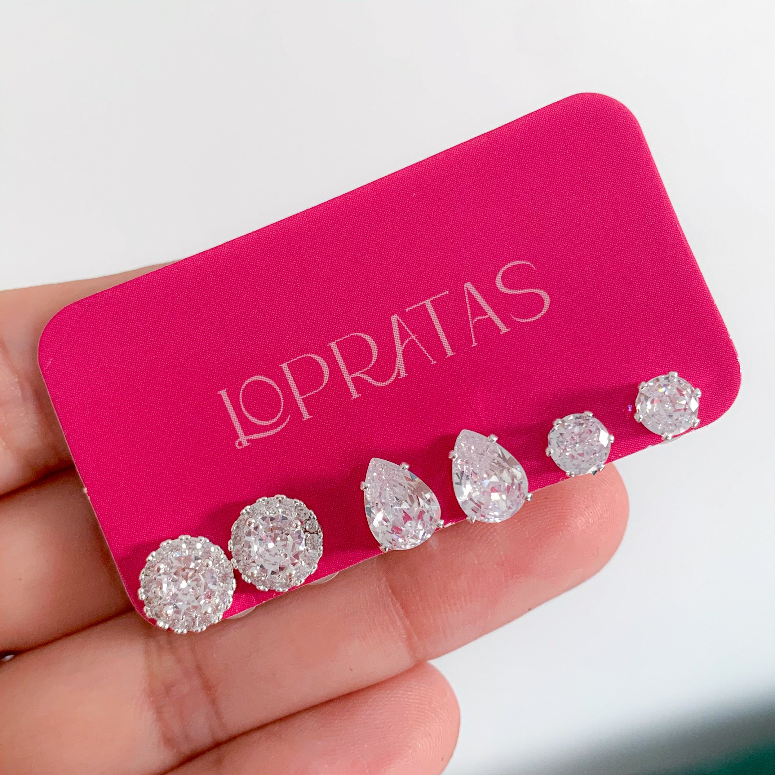 Detalhes: Kit contém 3 (três) pares de brincos em zircônia.